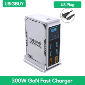 Ubigbuy 300W GaN Charger PPS PD 100W USB Type C 6-Port Digital Display Desktop Fast Charging Station for MacBook iPhone Samsung