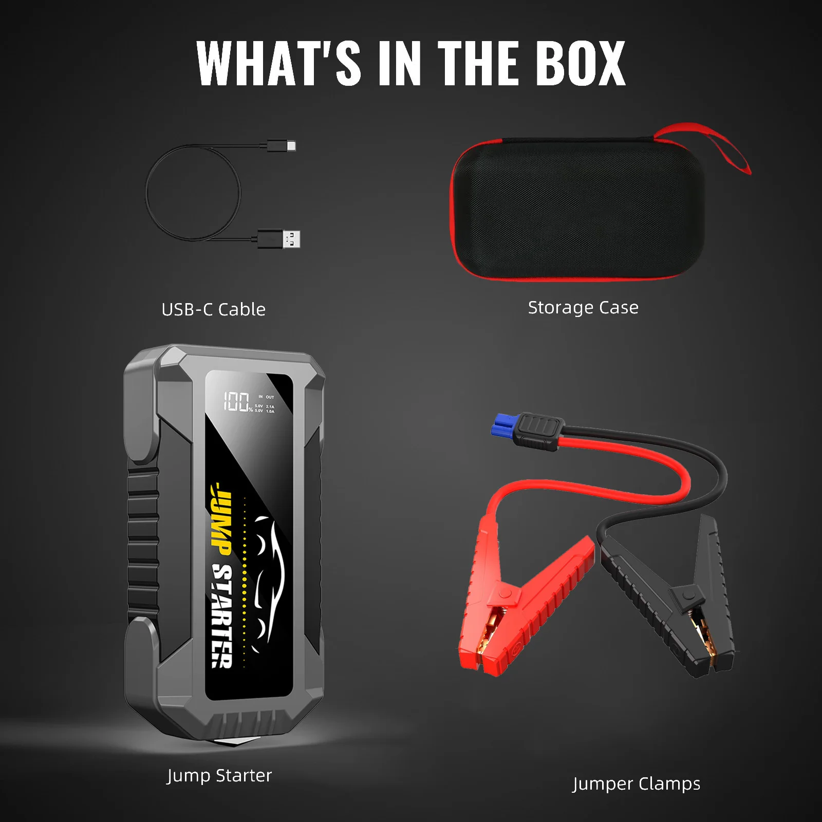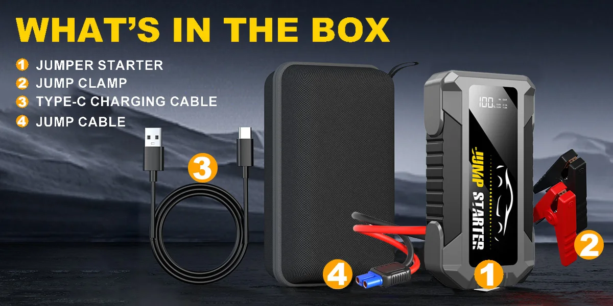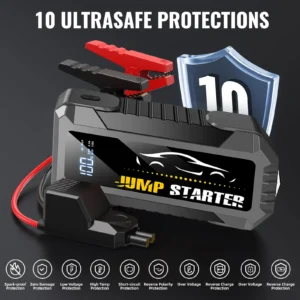 [LCD Screen Display, At a Glance] With a simple LCD screen, you can get the power level, charging status, error reporting and other information at the first time, which is very convenient and practical. Relative to other similar booster pack jump starters in the market, we start from the buyer's needs and make everything simpler.