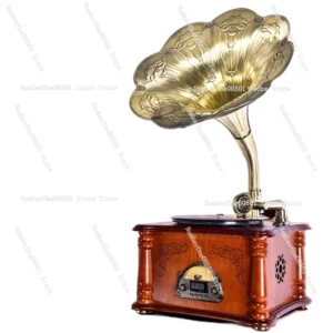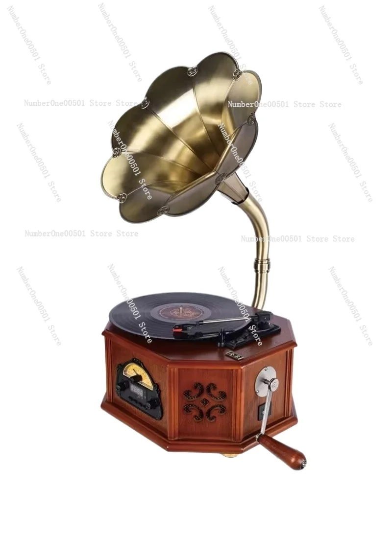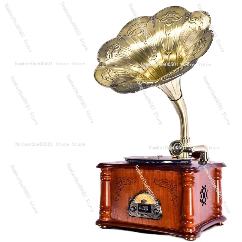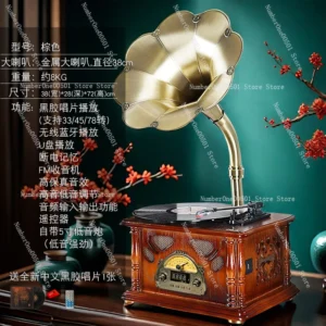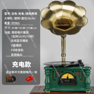 E. S7 dark green + charging, plug-in dual-purpose model + genuine vinyl record, large speaker with a diameter of 38 cm